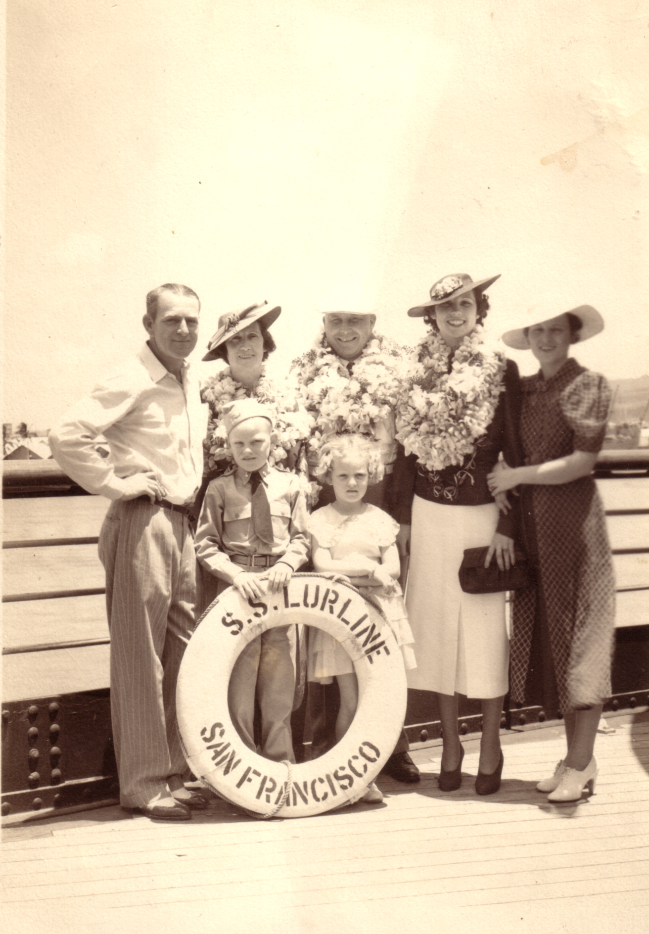 Carl Walter and Helen Maurice Kinser and Family on cruiseline. 11 Aug 1940. Carl is on the left and my father Kenneth is the boy in the middle.