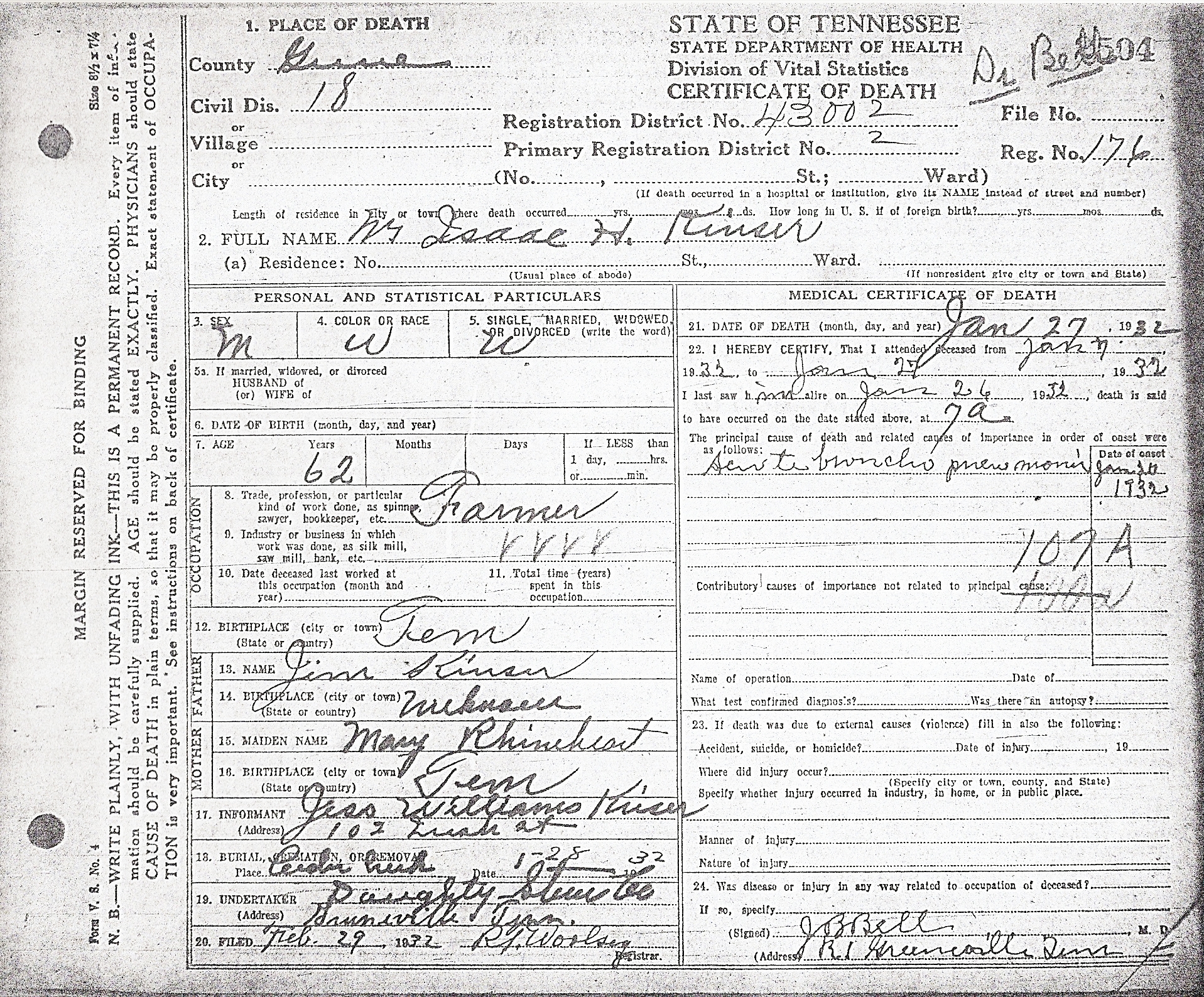1932 Death Certificate